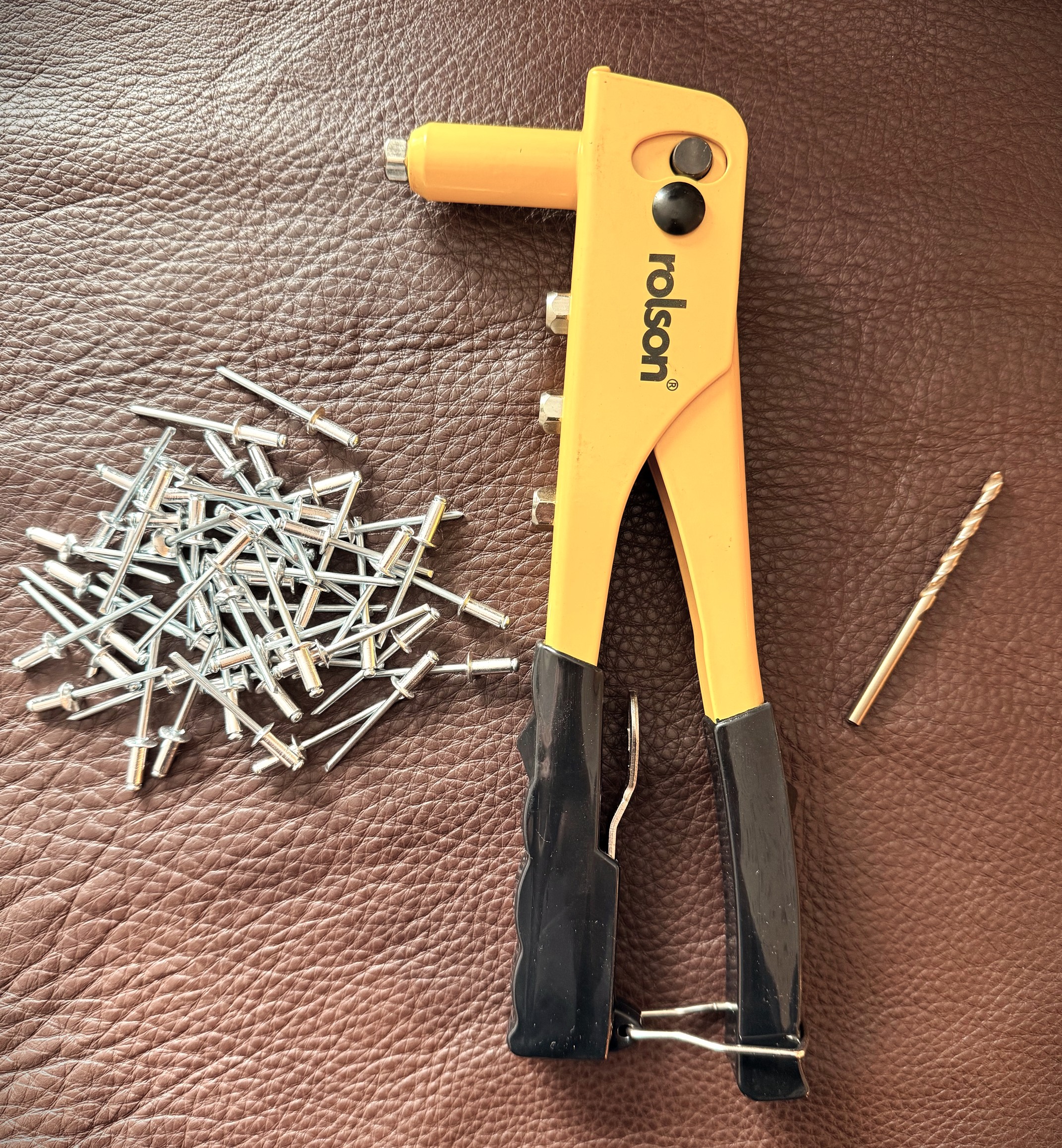 We recommend removing the damaged strap completely before pulling the old rivets out with pliers. If any rivets break you can drill them out with any household drill using the drill bit supplied. A whole chair can be re-strapped within 2 hours with this simple-to-use kit.